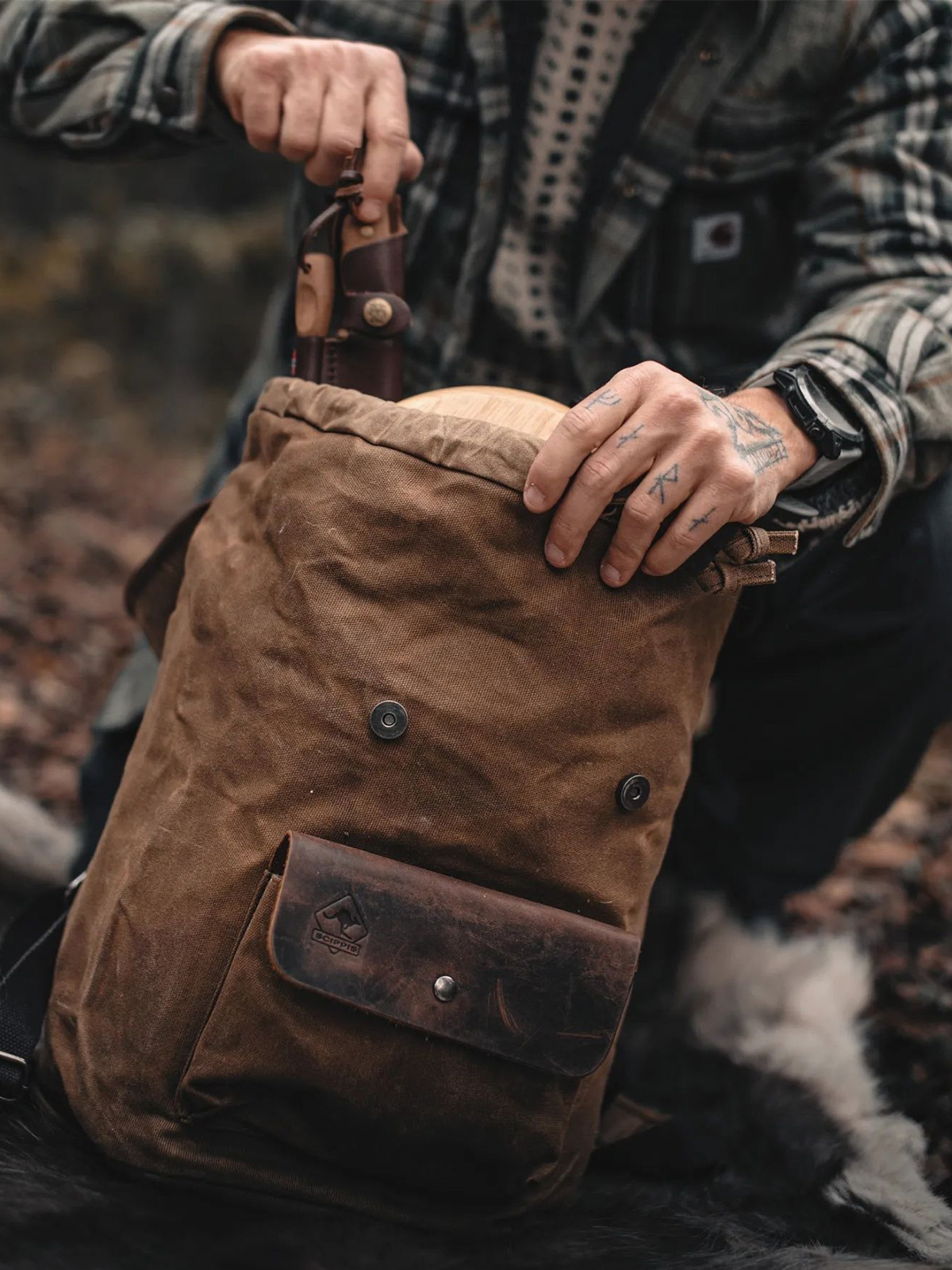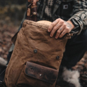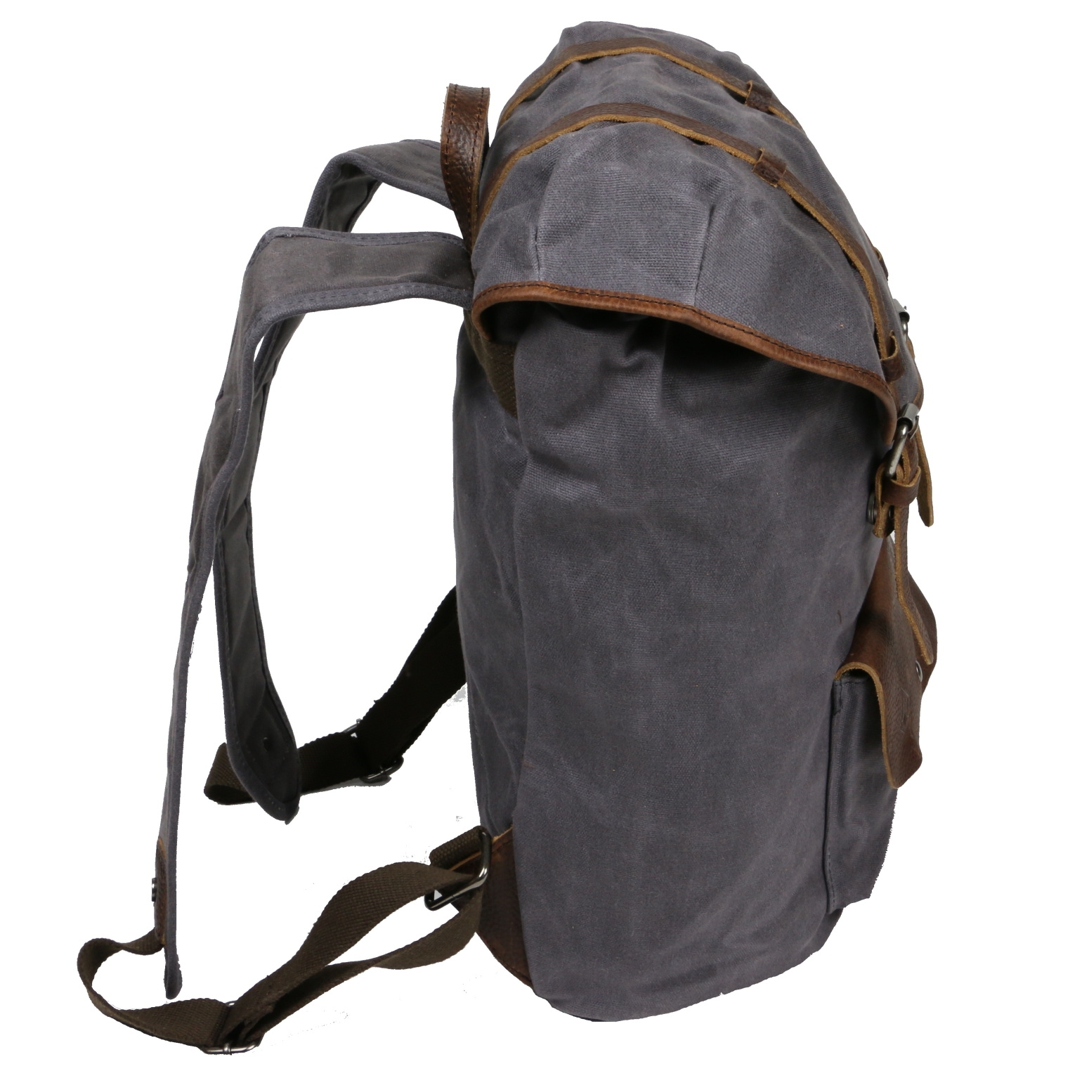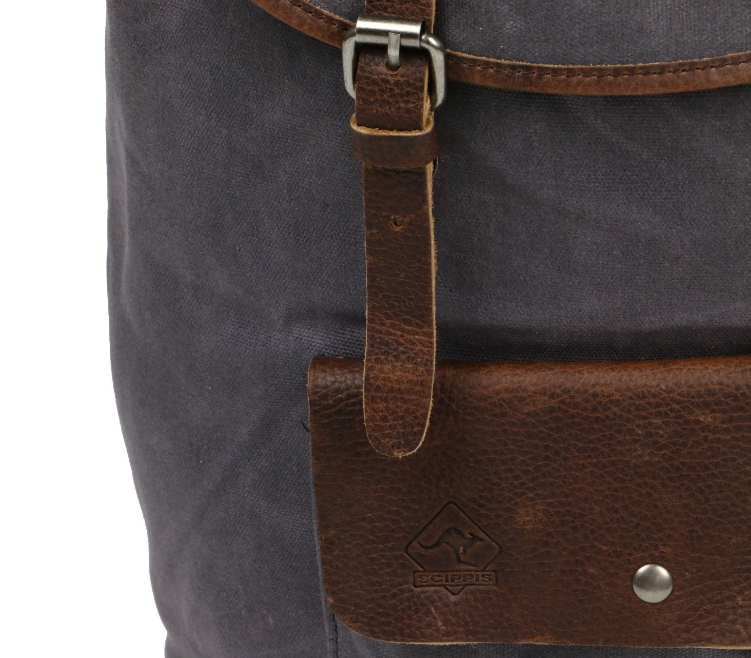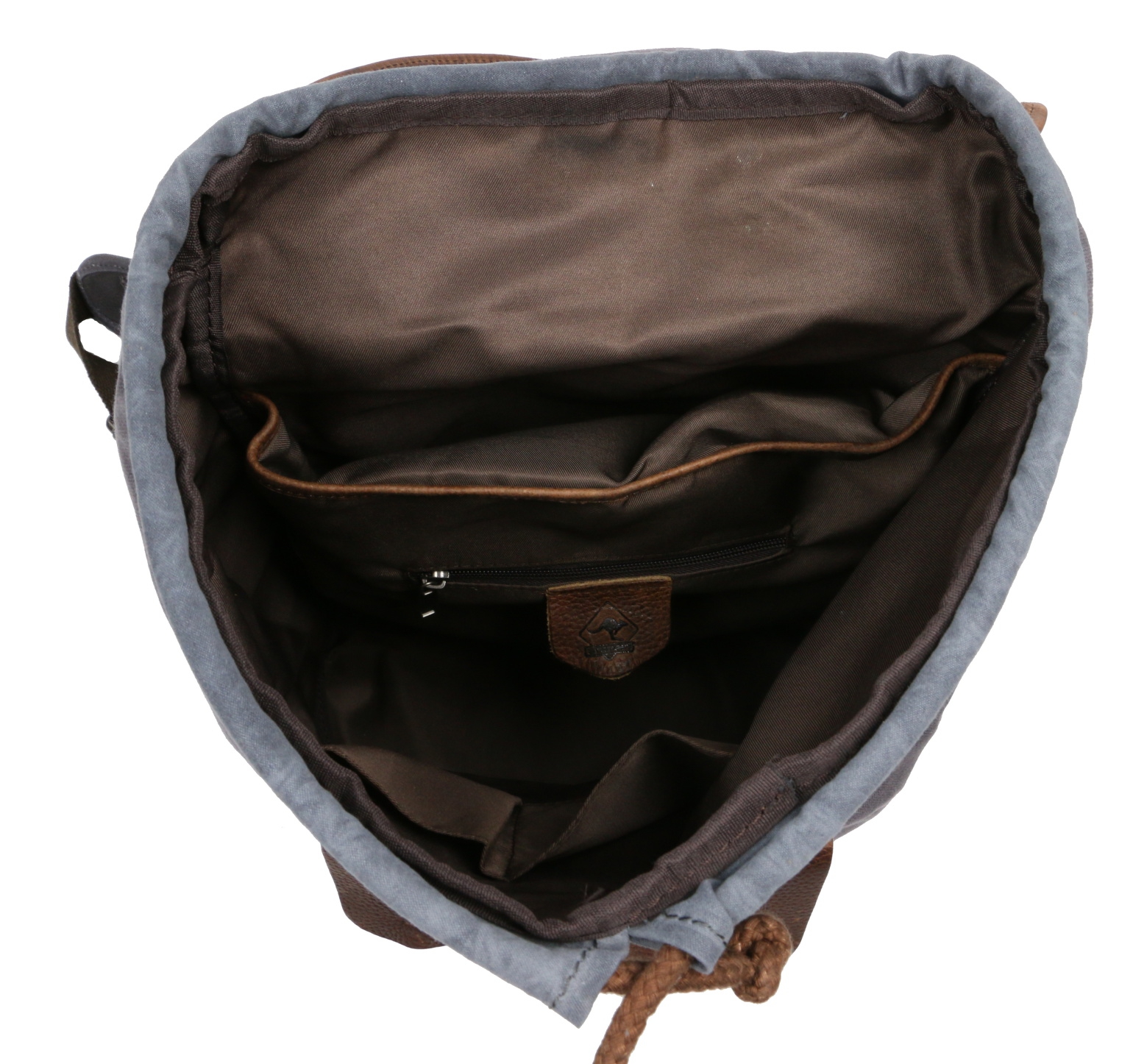 Robustní impregnované plátno není tak těžké jako celokožený batoh a je v kombinaci se silnou nubukovou kůží vizuálně velmi zajímavé.