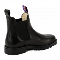 Černá barva odpovídá módním trendům, stejně jako robustní impregnovaný kožený svršek, který je jednoduchý na údržbu. Hladká podšívka z jemné hovězí kůže zajišťuje optimální absorpci vlhkosti. Dvě dekorativní smyčky umožňují snadné nazutí a vyzutí.