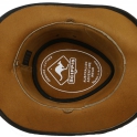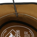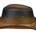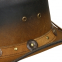 Je vyroben z hovězí impregnované kůže odolné vůči počasí a ozdoben conchos s páskem z pravé kůže. Má praktická očka pro snadné odvětrání v horkých dnech. V okraji krempy je ocelový drát pro individuální tvarování.