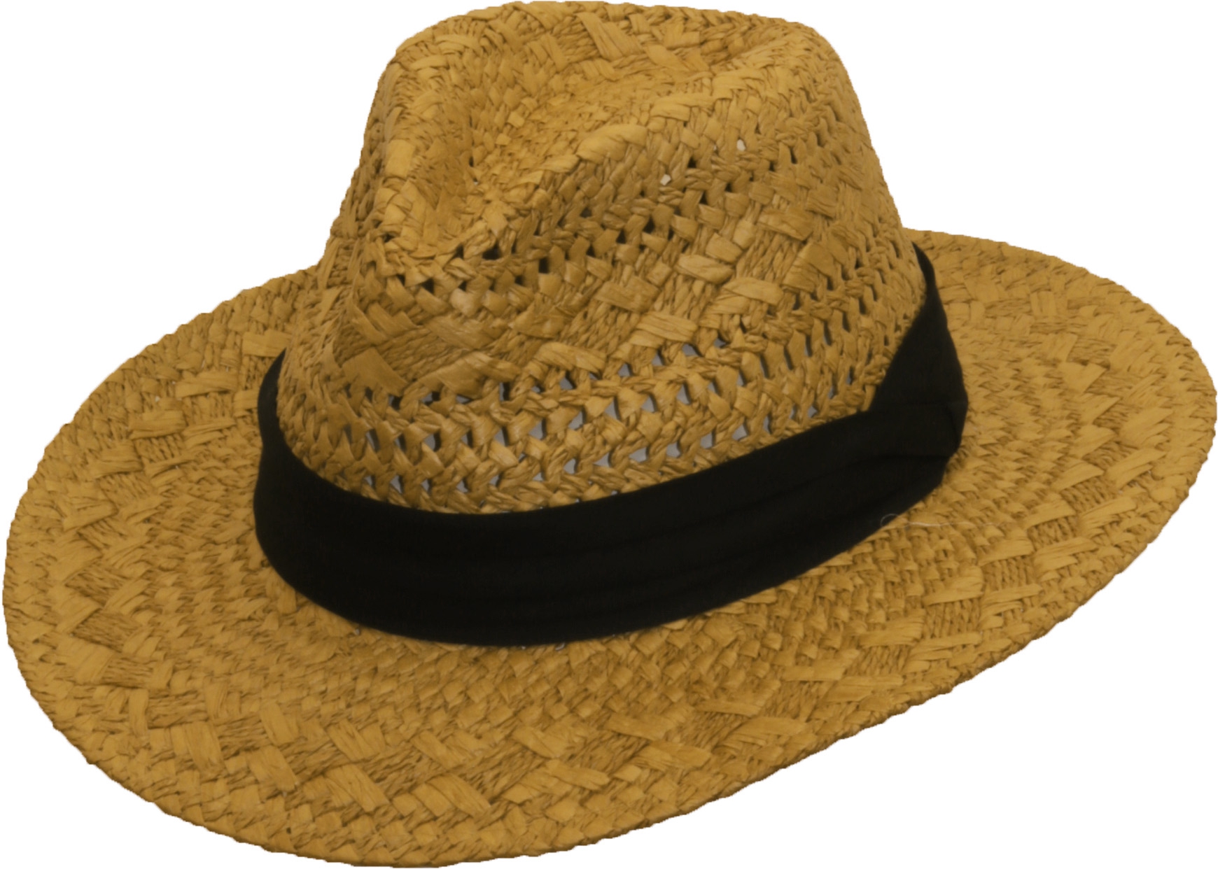 Manado je klasický styl letního klobouku v pěkné přírodní barvě, je ozdoben černou páskou.