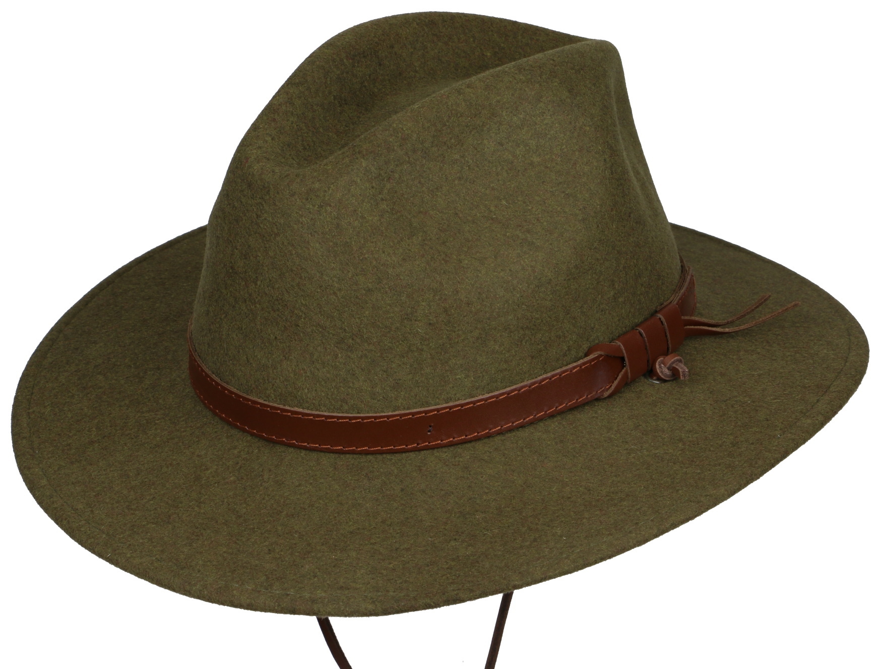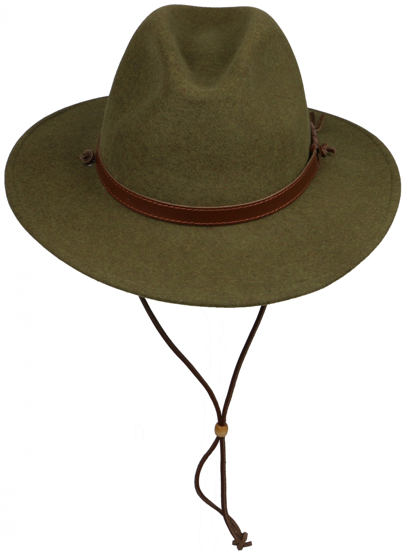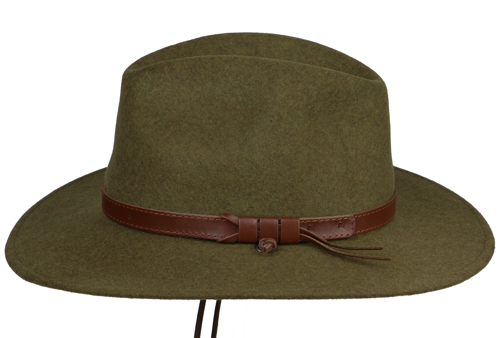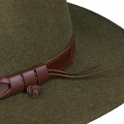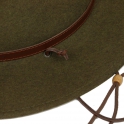 Klobouk je vybaven koženou šňůrkou, kterou lze snadno odstranit.