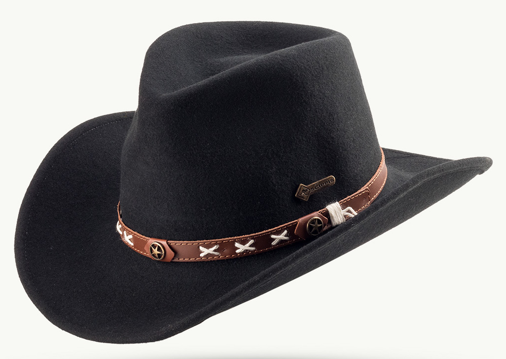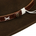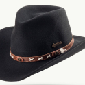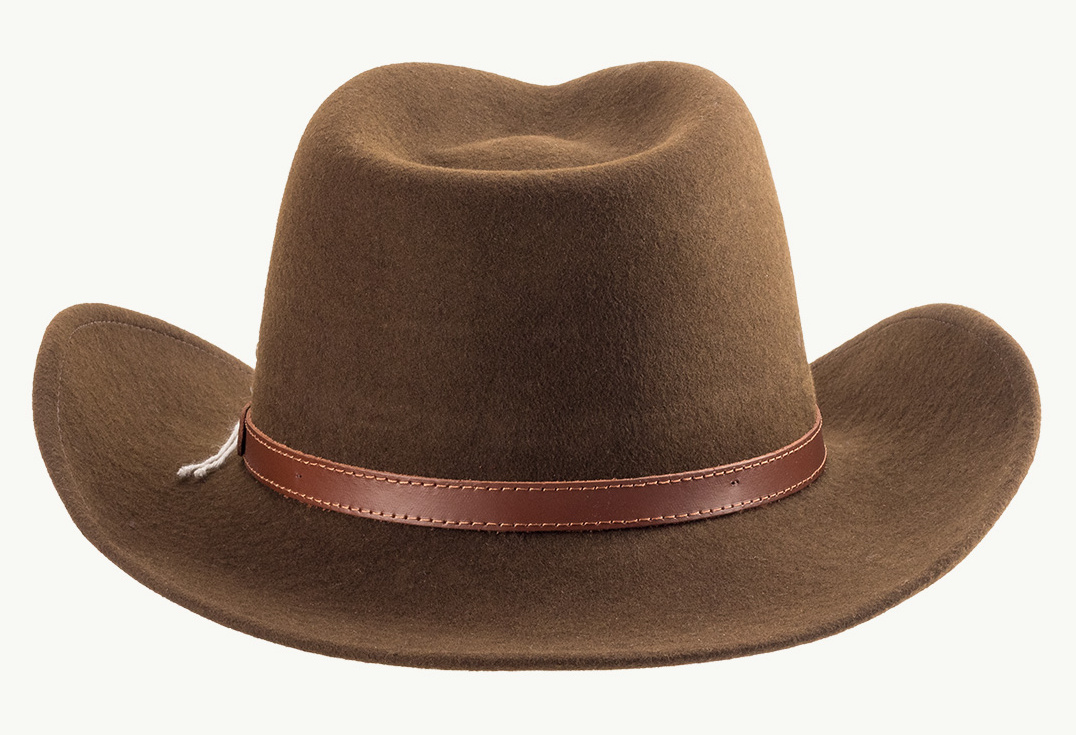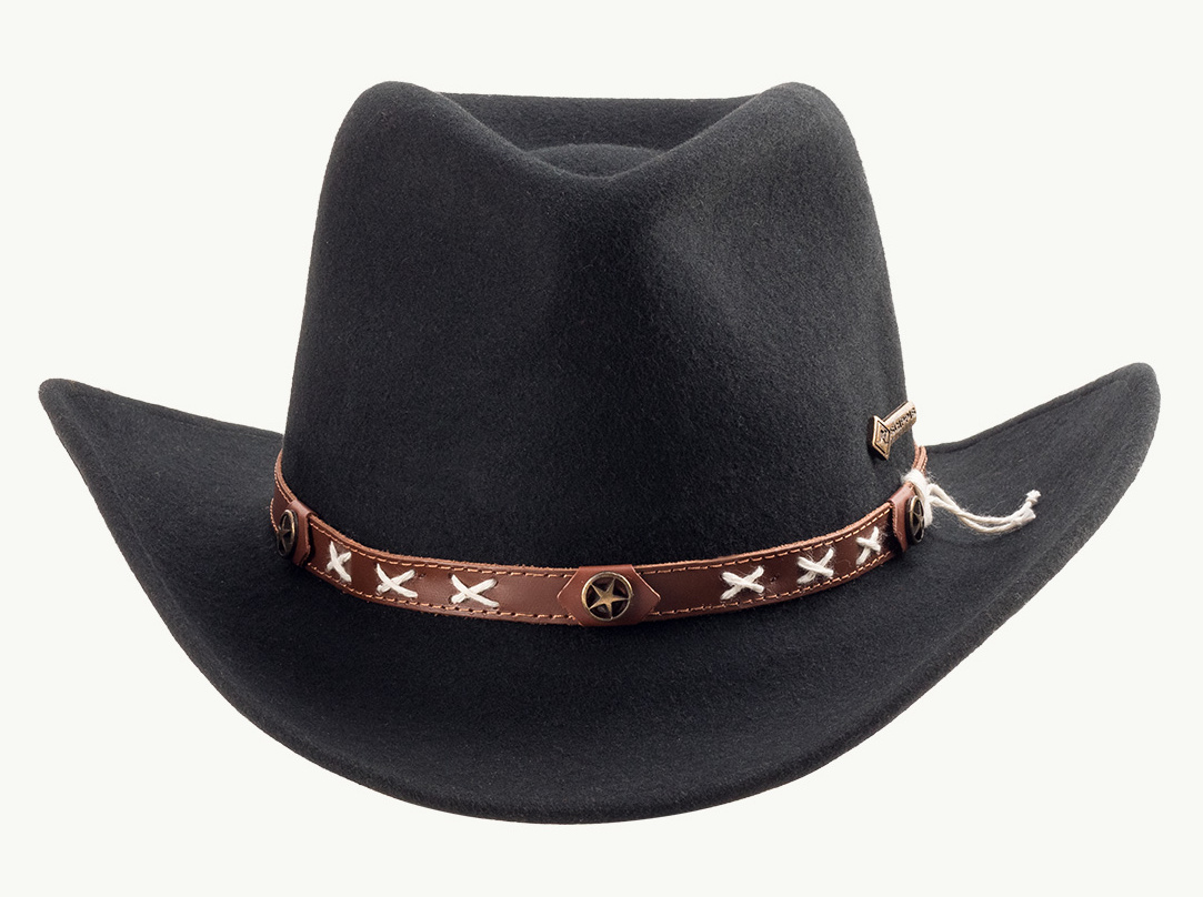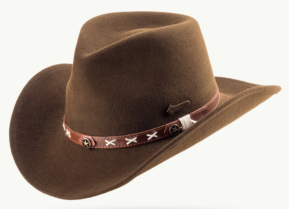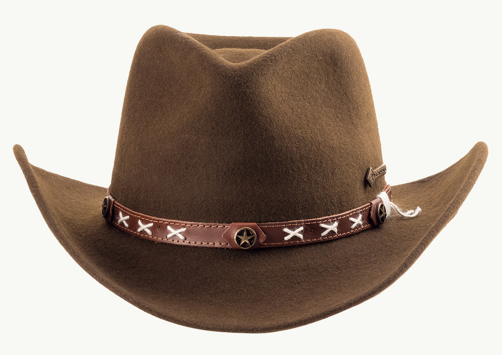 Vlněný klobouk ve westernovém stylu zaujme vynikajícími outdoorovými vlastnostmi. Smokey s originálními detaily, jako ozdobný pásek z pravé kůže prošitý křížovým stehem a všitým drátem v okraji krempy pro individuální tvarování, je prostě originální.