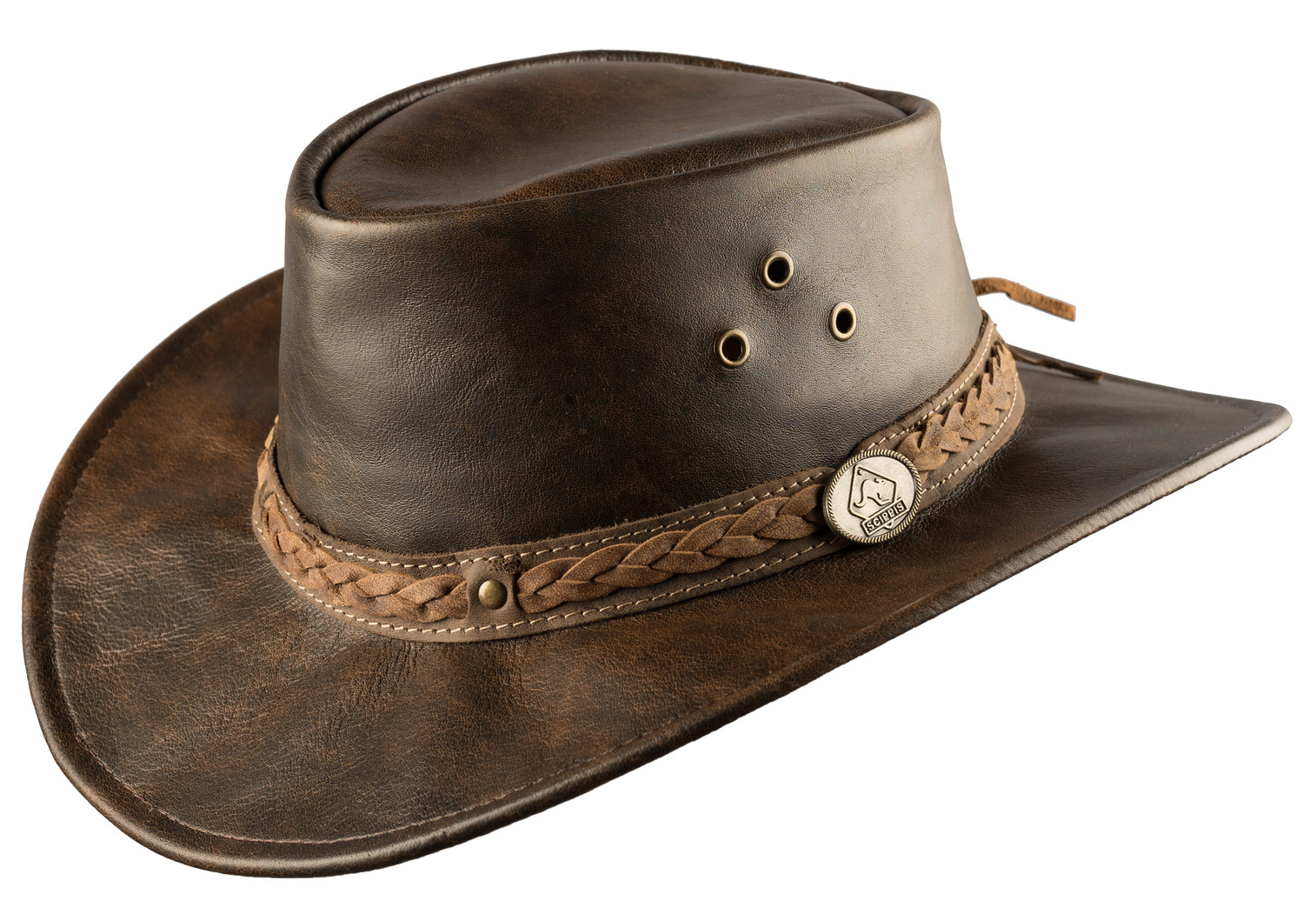 Barva kůže je hnědo-béžová, během činění se odhalují jemnosti kůže. To v kombinaci s extra plochou siluetou dělá z CooRoo jeden z nejkrásnějších kožených klobouků.