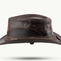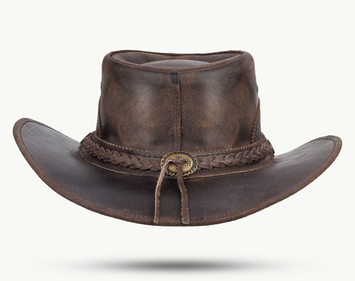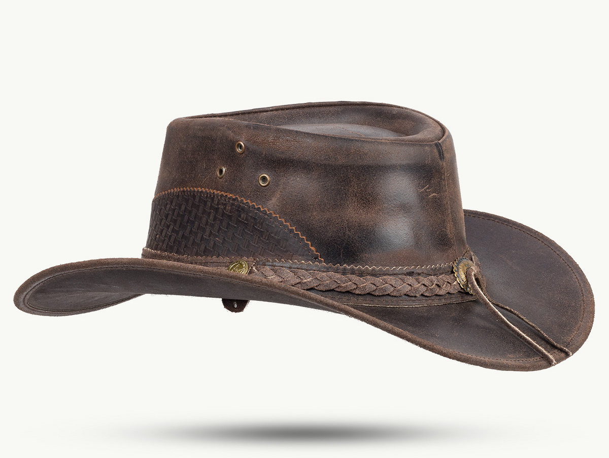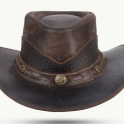 Klobouk Lyndon je mistrovským dílem westernového stylu, které zaujme dokonalou kombinací funkčnosti a designu. Vyrobený z pevné hnědé hovězí kůže s působivým vintage vzhledem, dodává každému outfitu nádech dobrodružství a osobitosti.