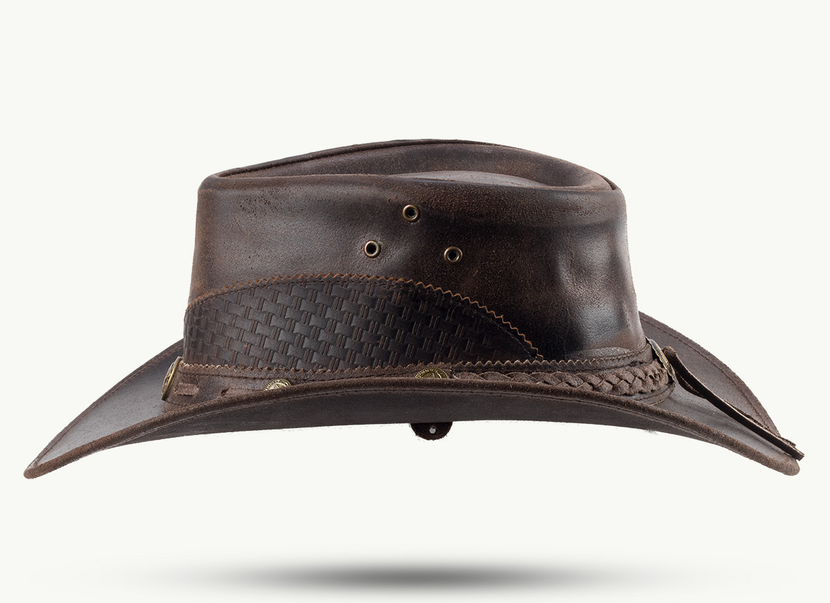 Klobouk z pravé kůže, který vypráví příběh a inspiruje k dobrodružství.