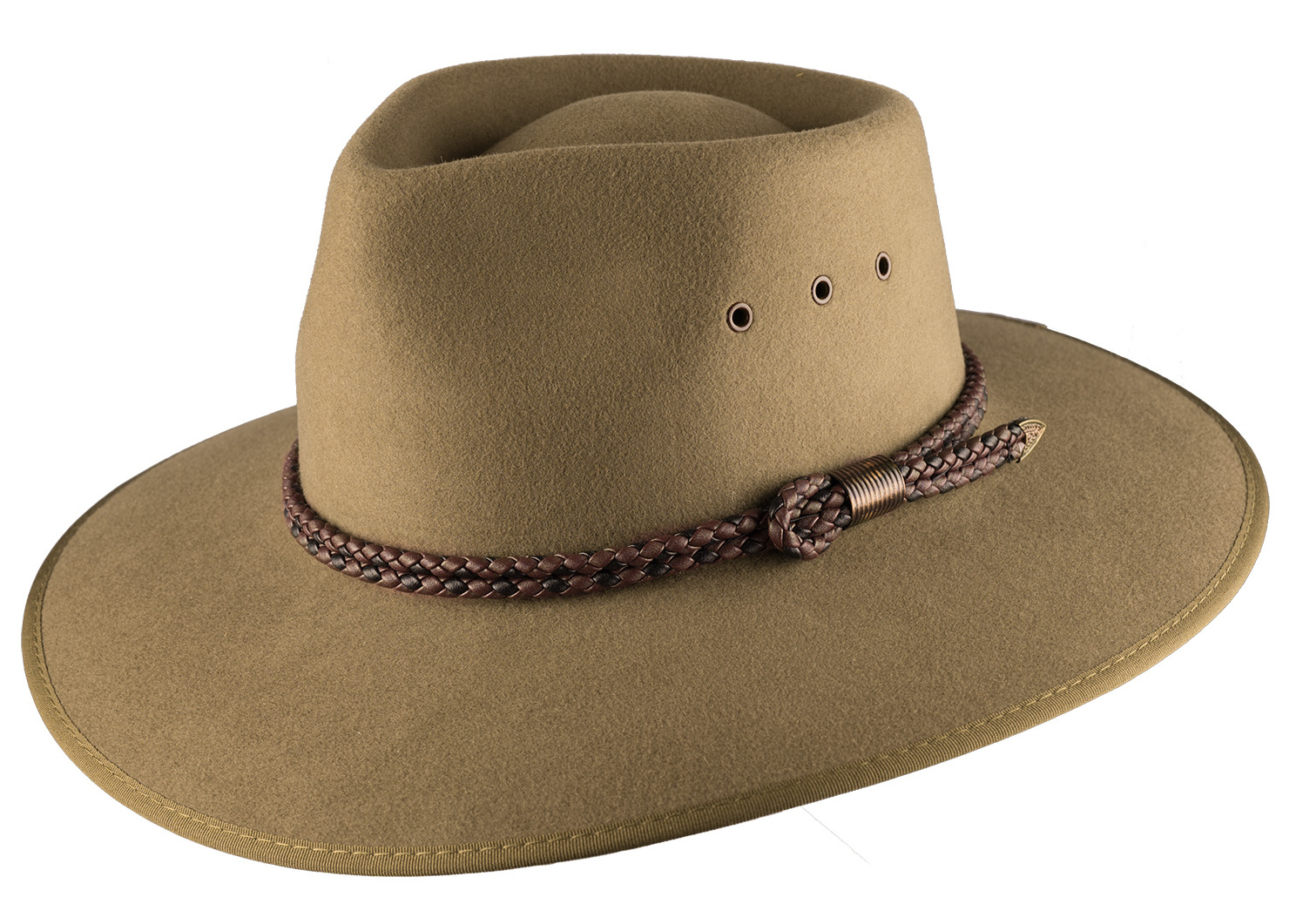 Countryman se širokou krempou a plochou korunou je typicky australský klobouk.