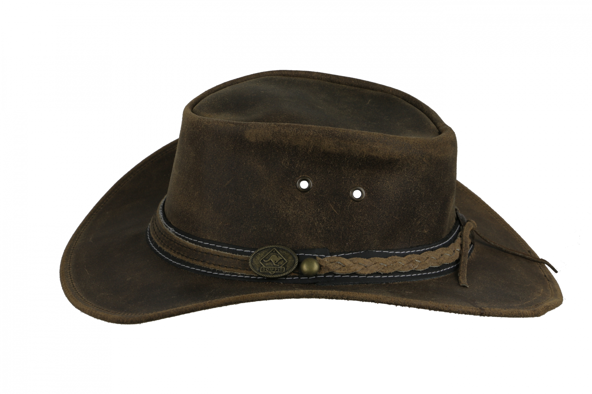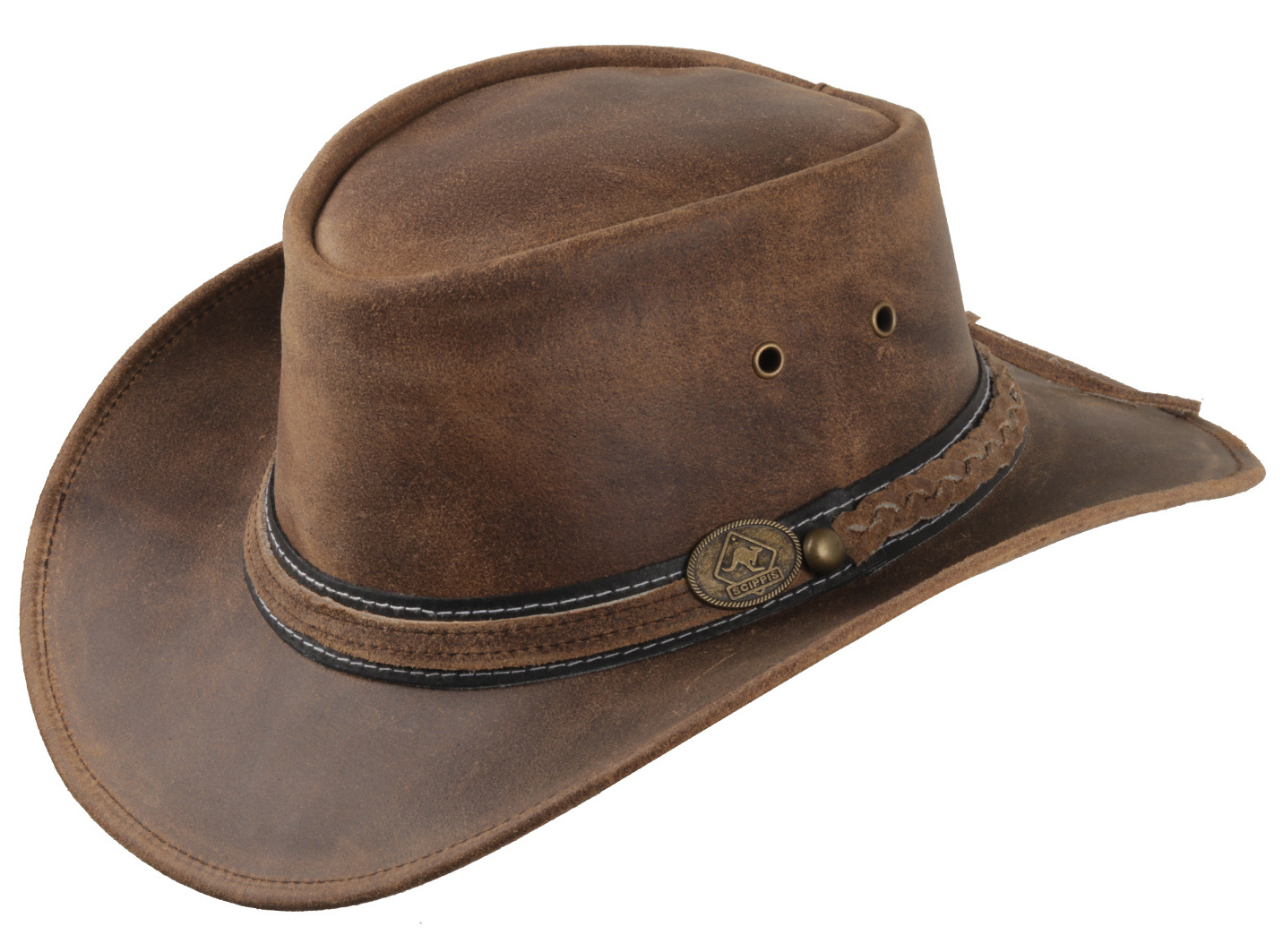 Irving od Scippis je robustní klobouk ze silné hovězí kůže.