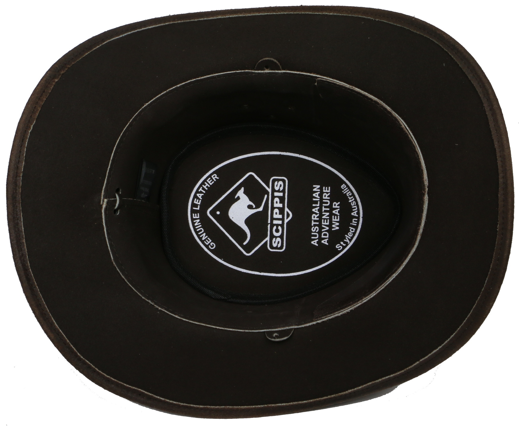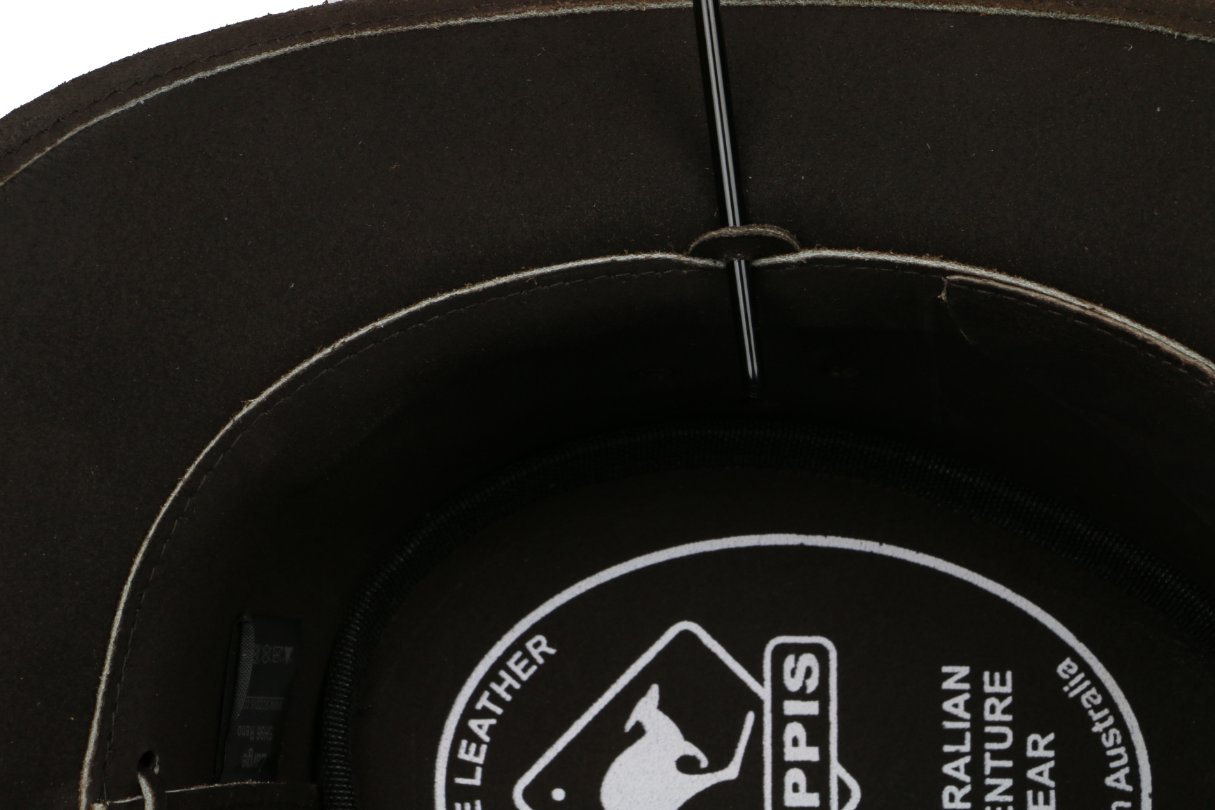 Uvnitř klobouku jsou malé otvory, které umožňují snadnou montáž řemínku pod bradu.
