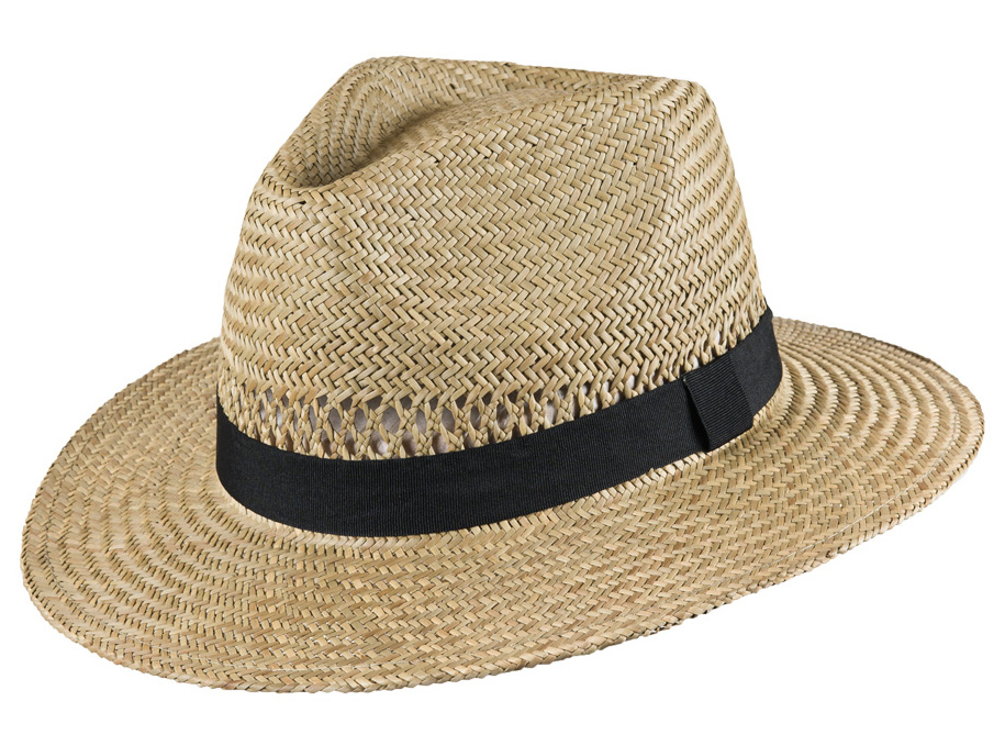 Klasický styl letního slaměného klobouku v pěkné přírodní barvě. Otevřené pletení zaručuje větší vzdušnost. Ozdoben černou páskou.