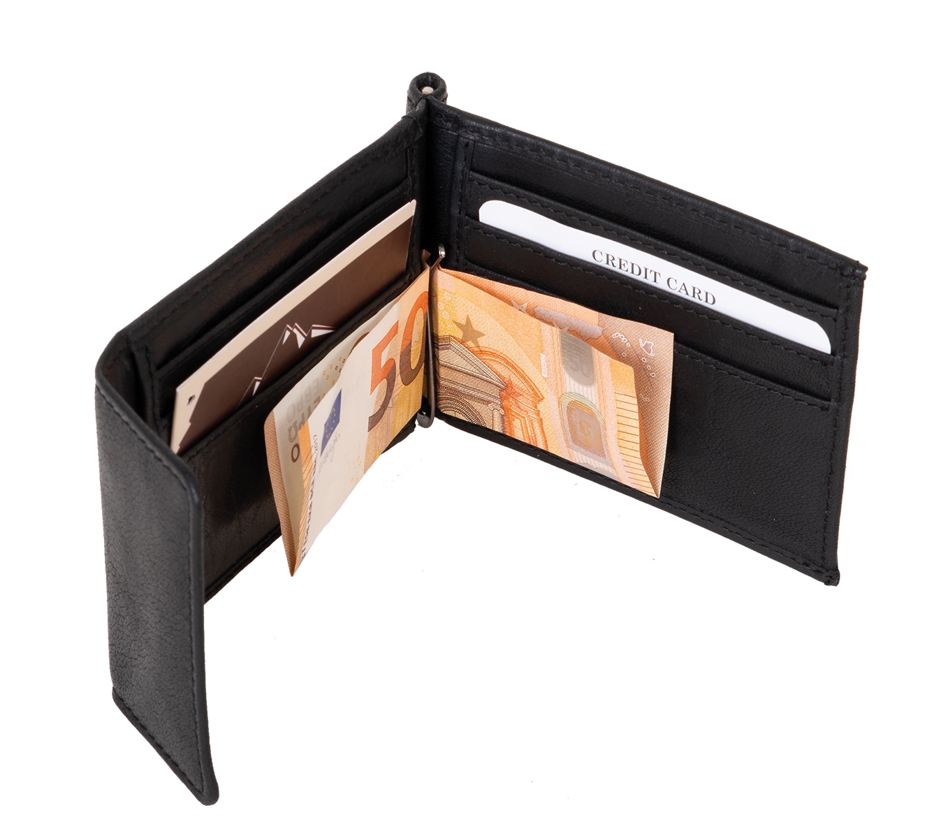 Do dolarovky Zaster uložíte bankovky a šest bankovních karet. Má tři otevřené prostory pro ID karty (velikost OP).