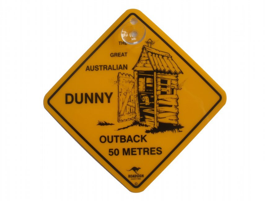 Originální australská cedulka ROADSIGN ze žlutého plastu s černým potiskem a přísavkou.
