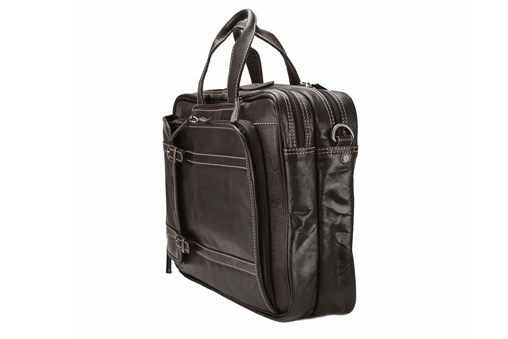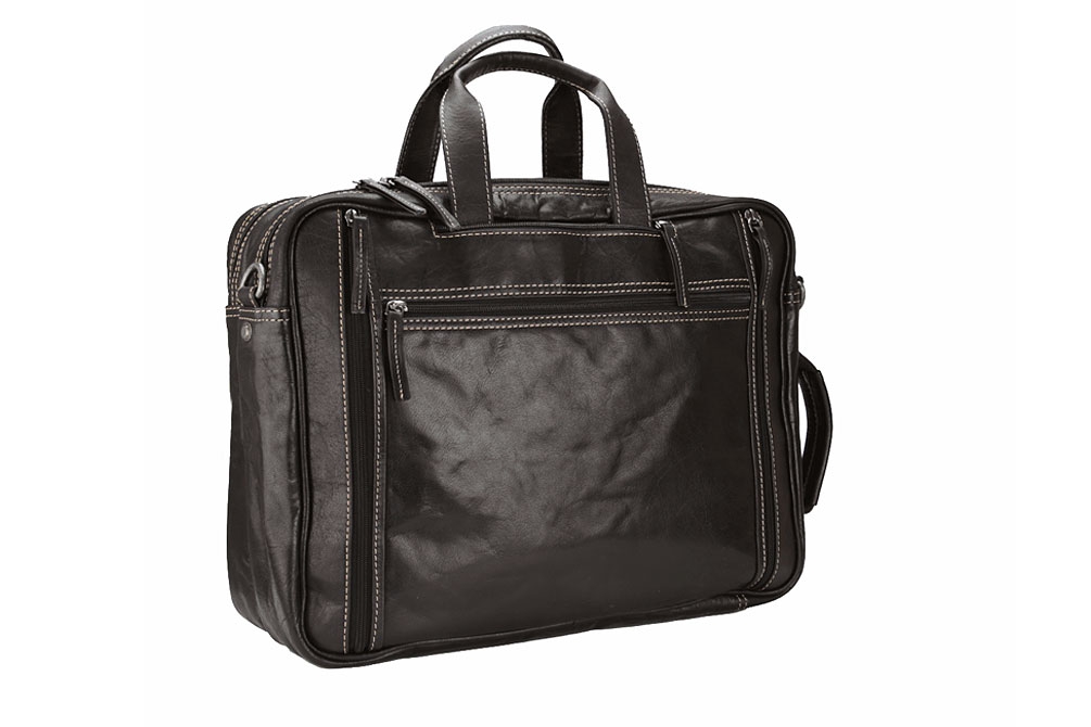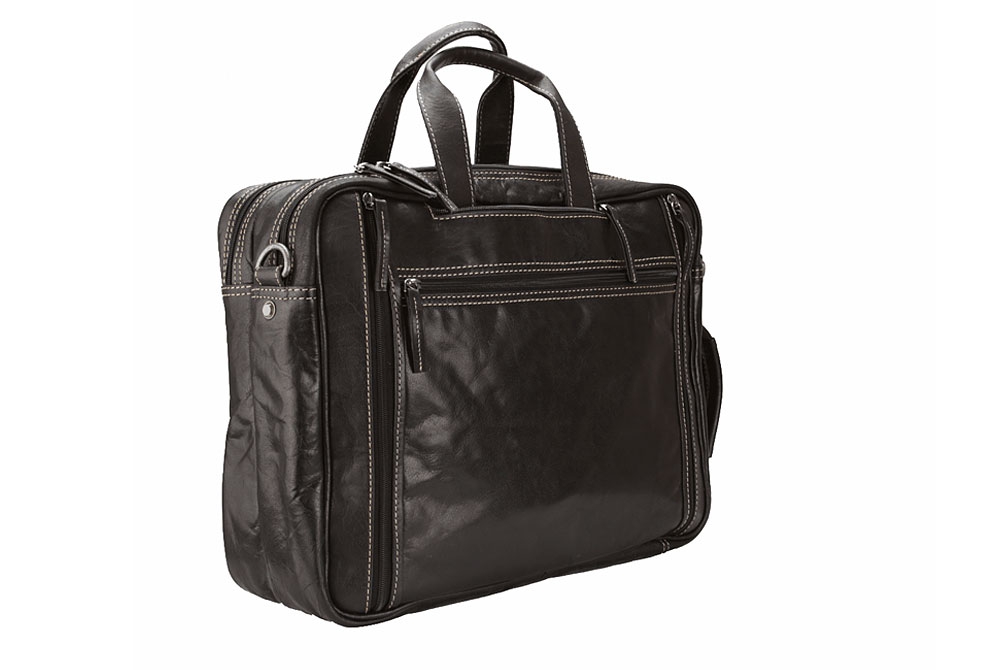 Dvě prostorné hlavní přihrádky na zip, jedna polstrovaná pro laptop (až 17 "), jeden prostor pro dokumenty nebo malé složky. Na přední straně je velká kapsa rozdělena na dvě malé kapsy, sloty na pera a karty. Na zadní straně tašky je další kapsa na zip vhodná pro dokumenty A4.