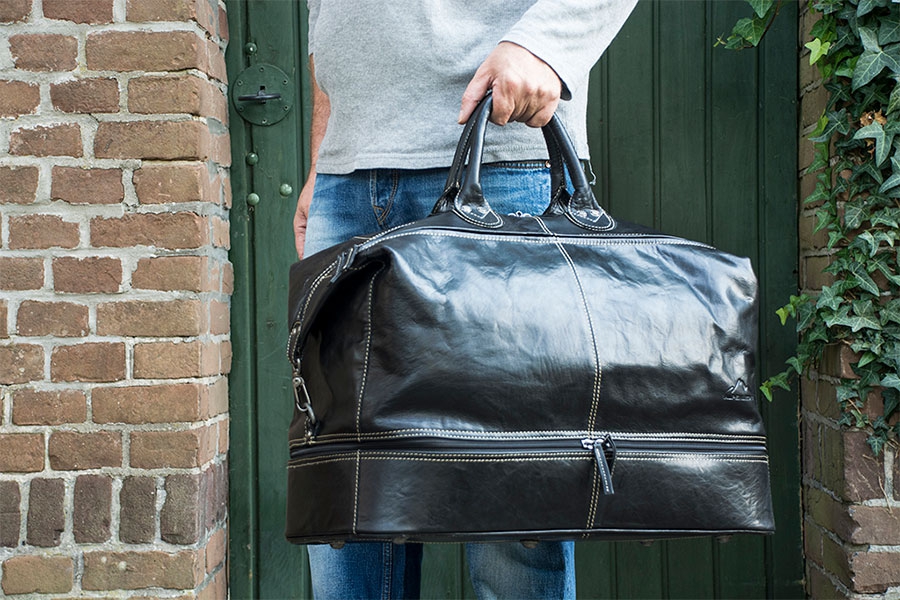 Cestovní kožená taška působící nadčasovým dojmem je ideální na víkendové výlety a pracovní cesty.