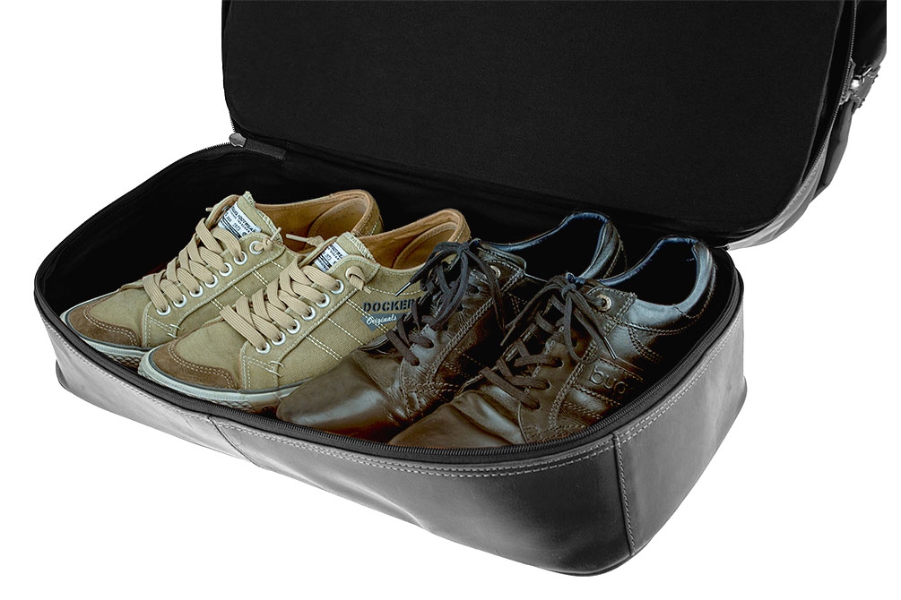 Velký hlavní prostor na zip. Uvnitř kapsa na dokumenty s uzavřením na zip, zesílená pohodlná držadla. Prostor na zip v dolní části je lze využít například pro uložení obuvy.