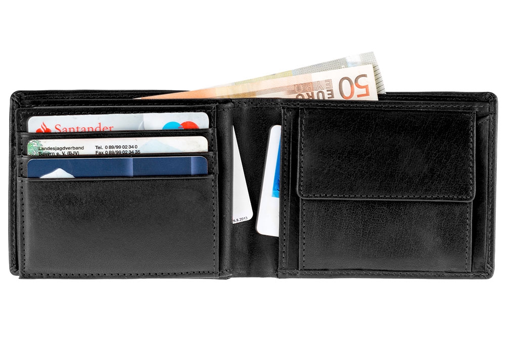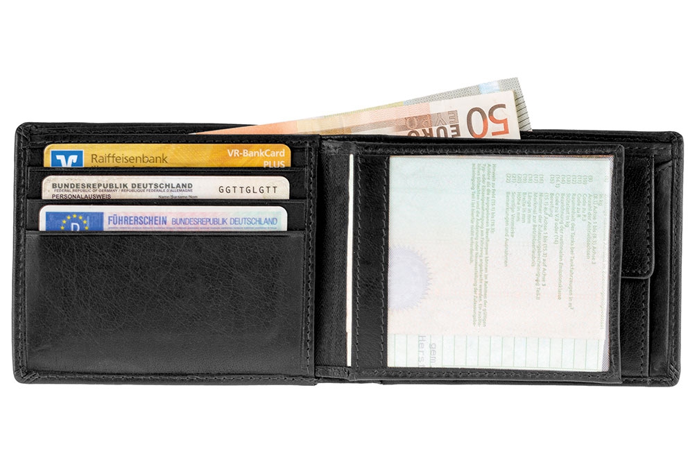 DAVOS má dva odkládací prostory pro bankovky, širokou mincovní přihrádku, kterou lze snadno otevřít a bezpečně uzavřít patentem. Šest slotů pro bankovní karty a tři sloty ve formátu 77 x 100 mm, z nichž jedna je vybavena prohlížecím oknem pro ID doklady.