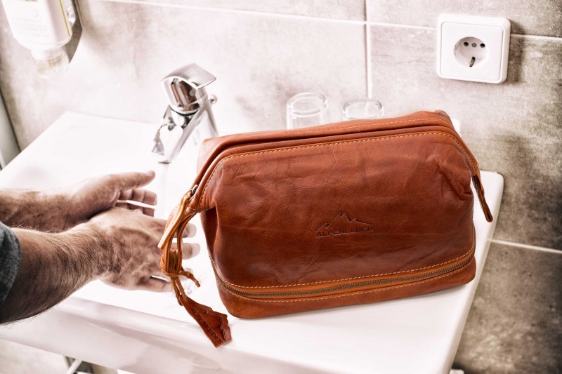 Toaletní taška v klasickém stylu pro velké cestovatele.